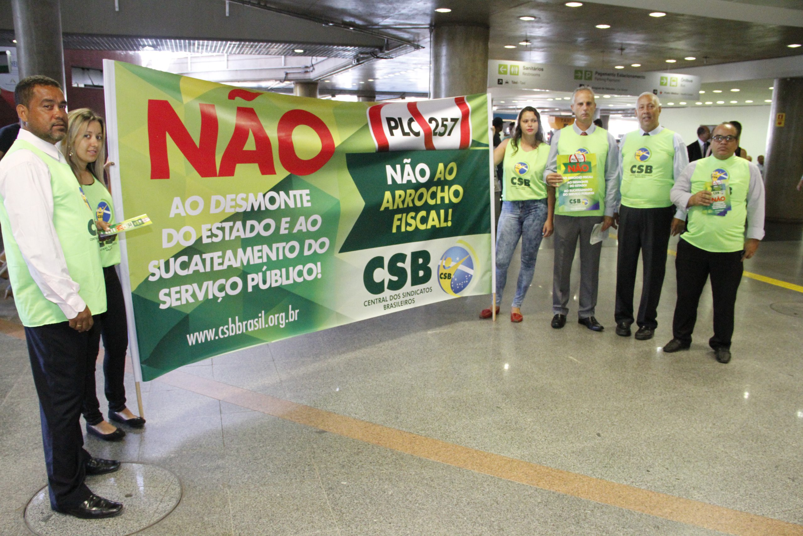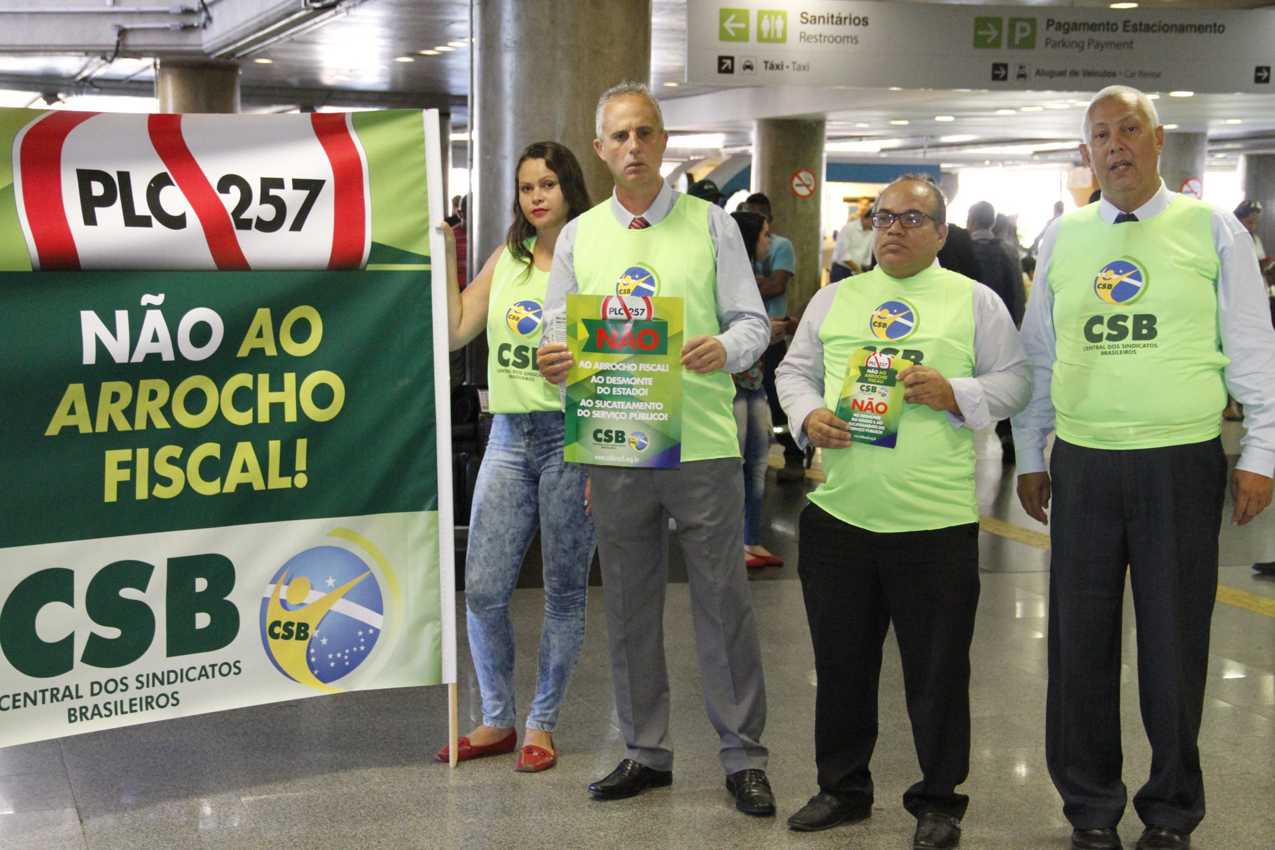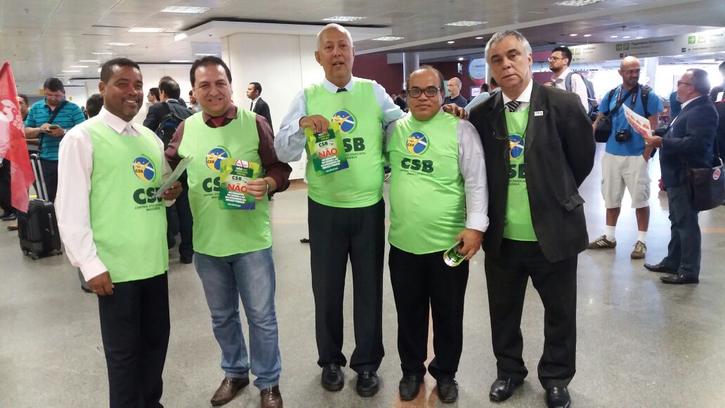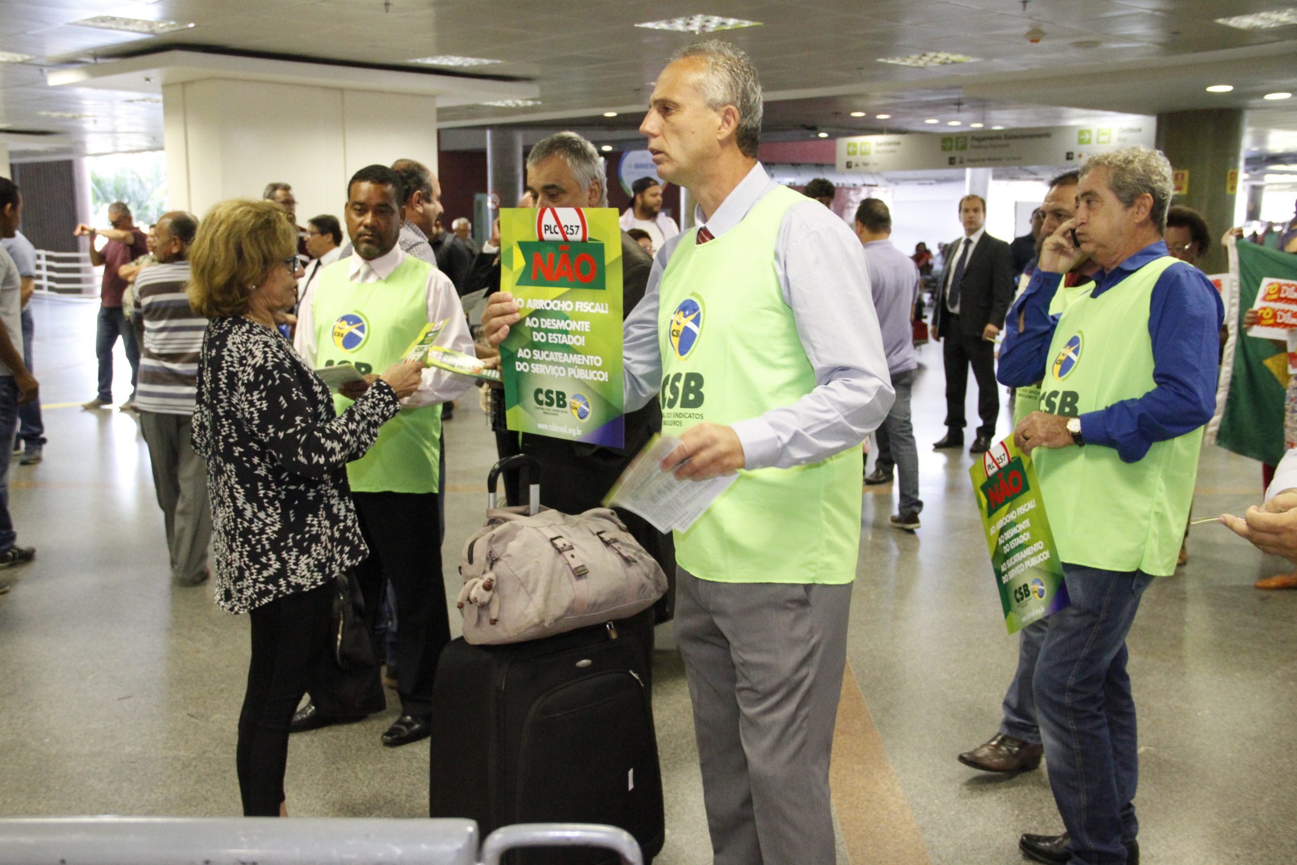 Dirigentes da CSB realizam ação contra PLP 257 no aeroporto de Brasília