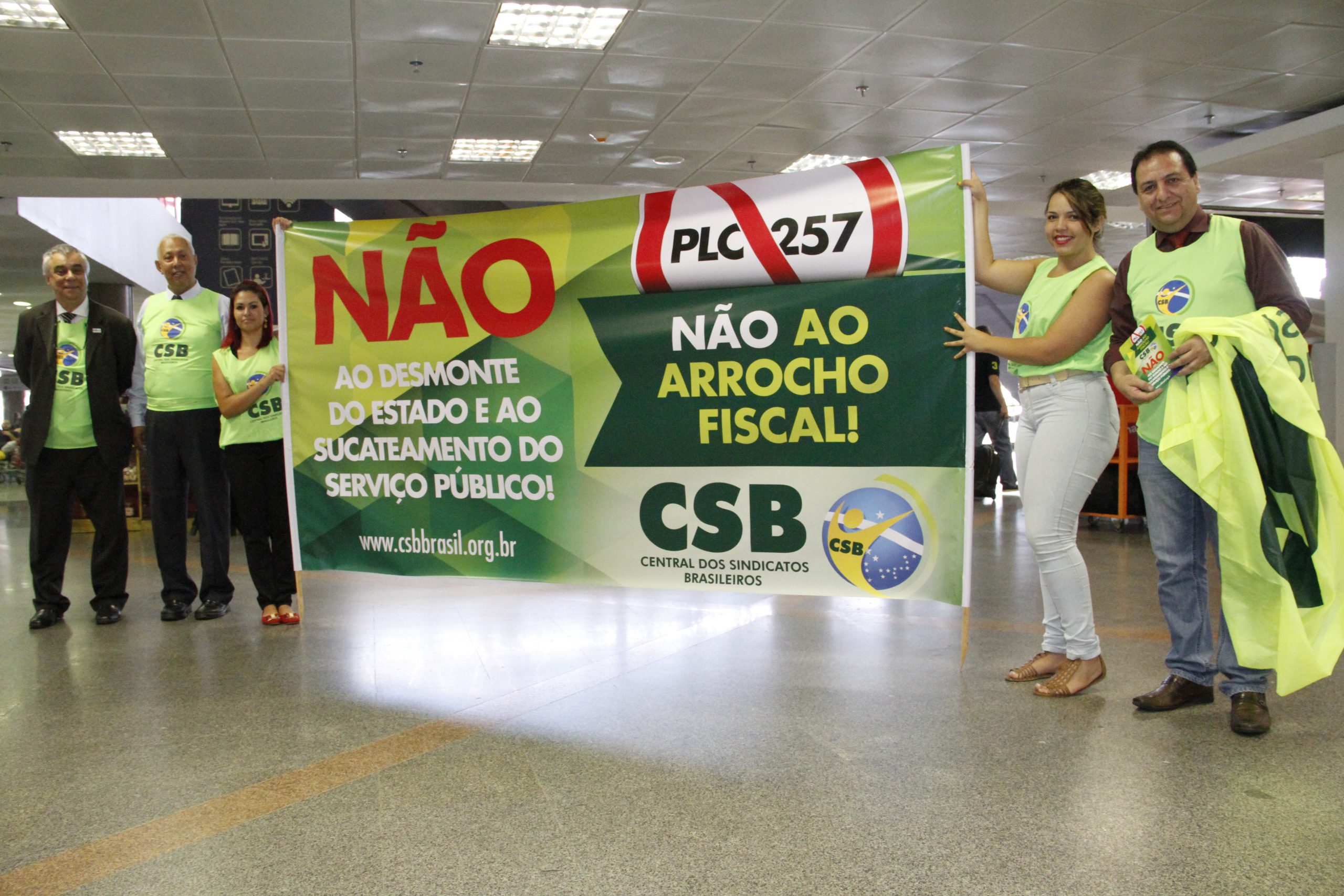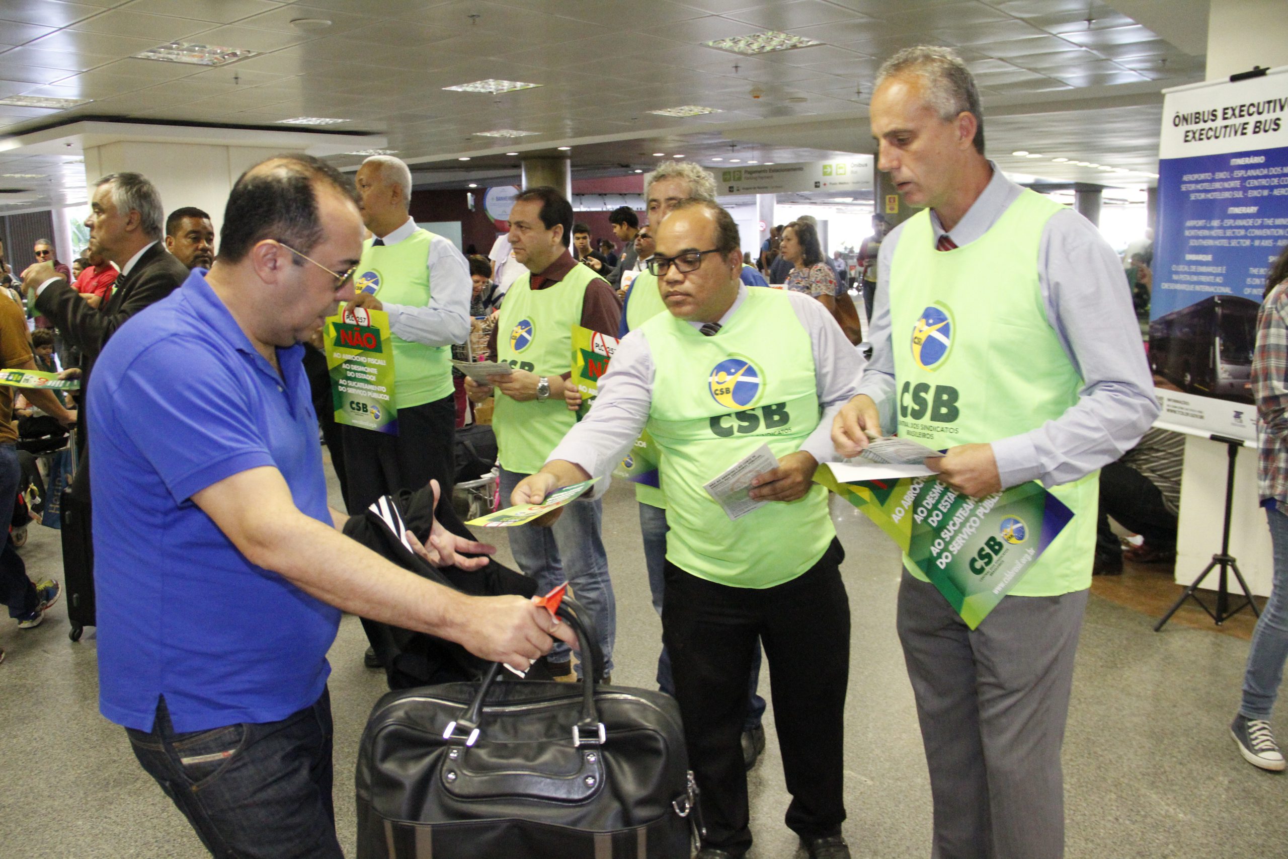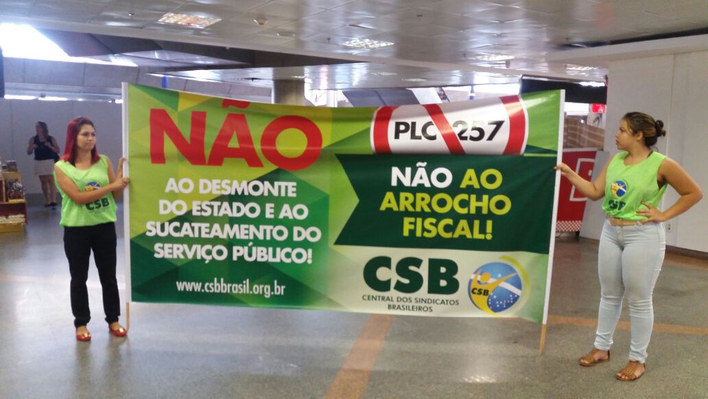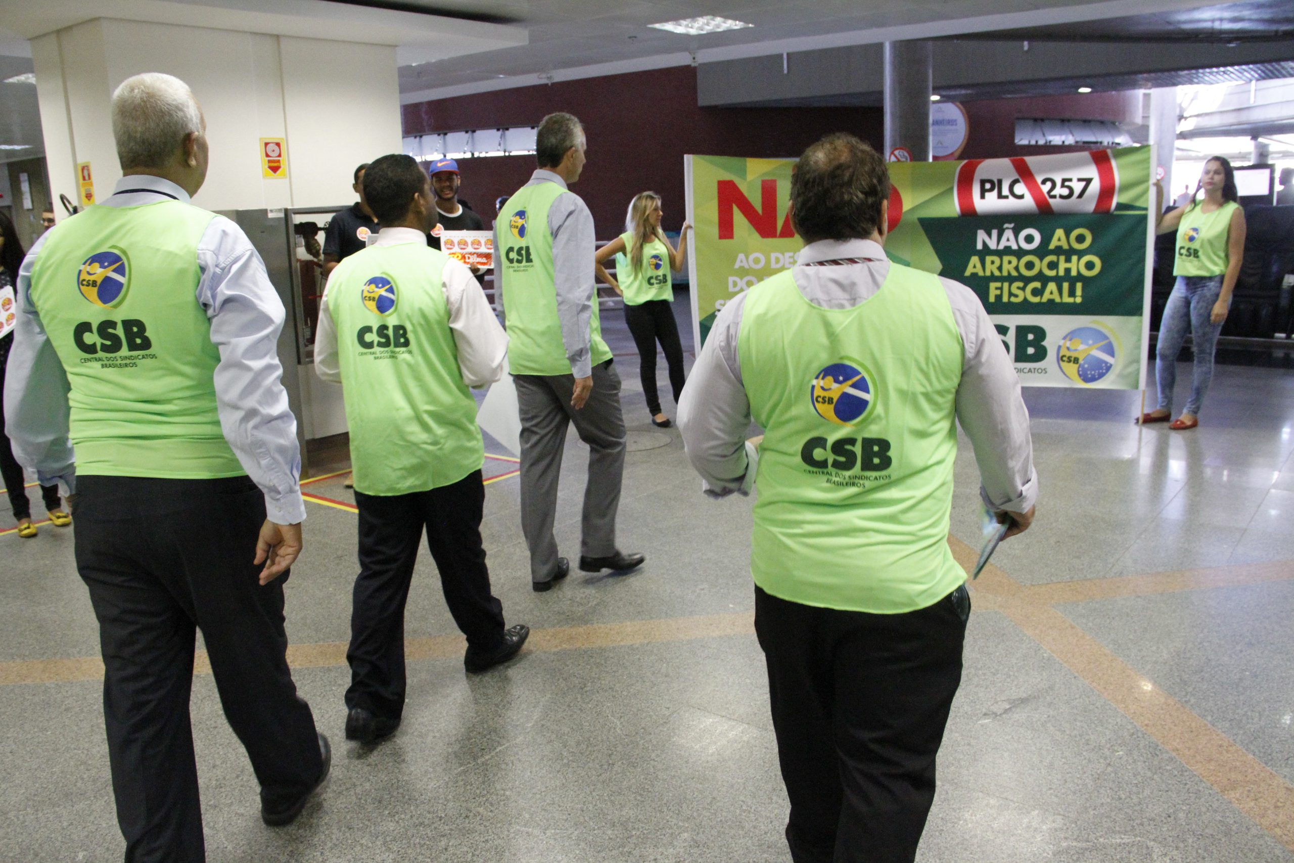 Dirigentes da CSB realizam ação contra PLP 257 no aeroporto de Brasília