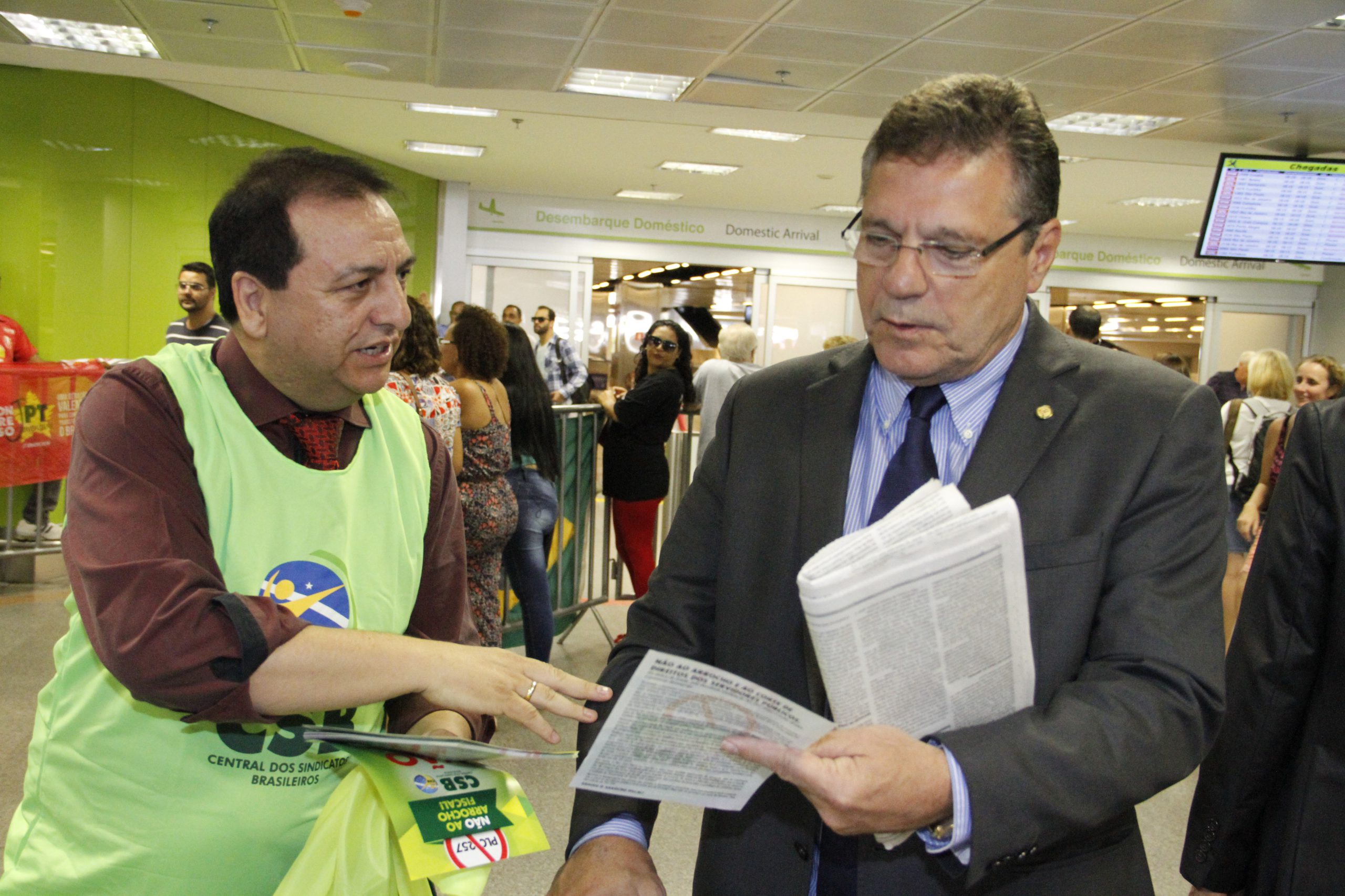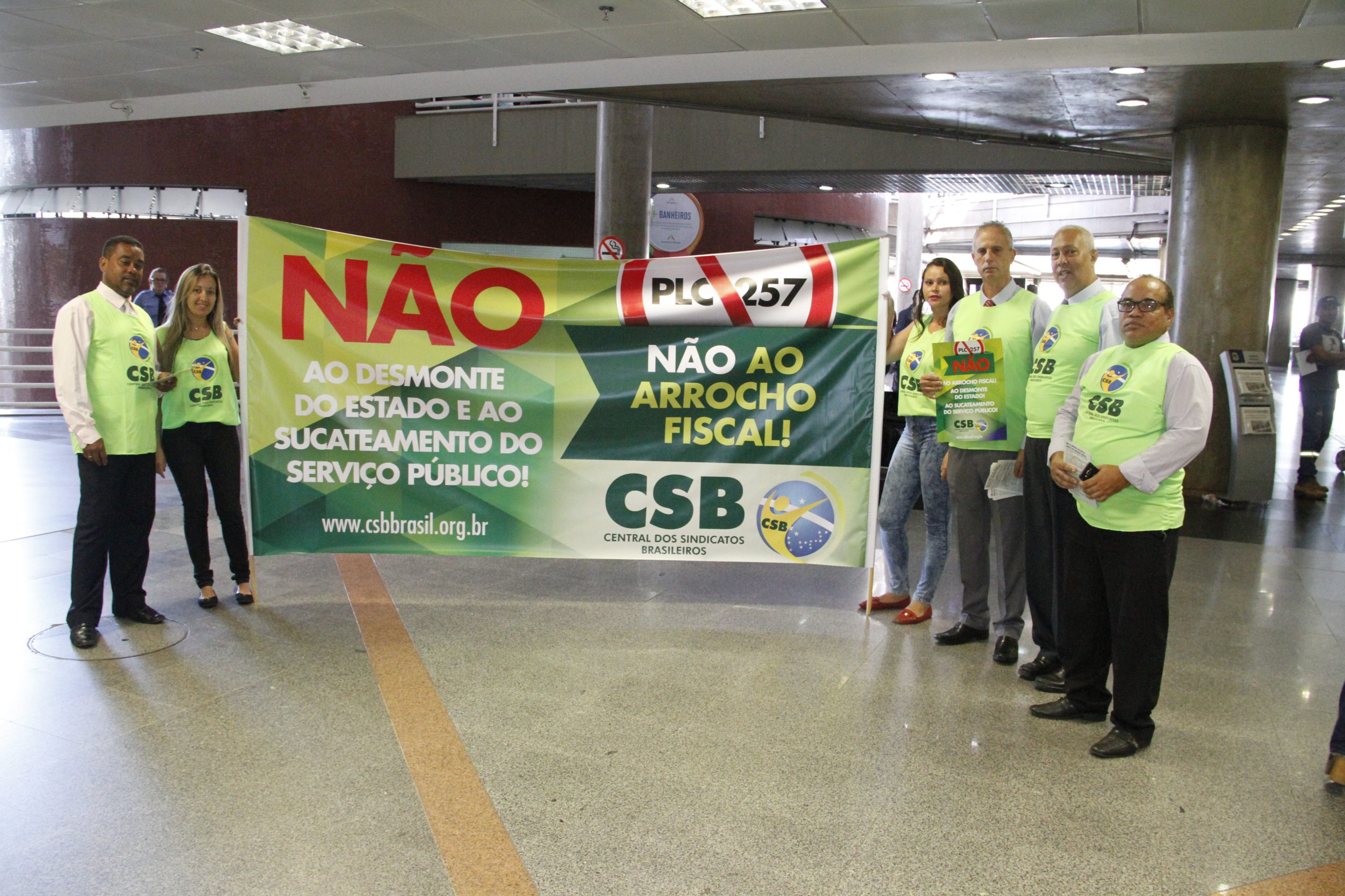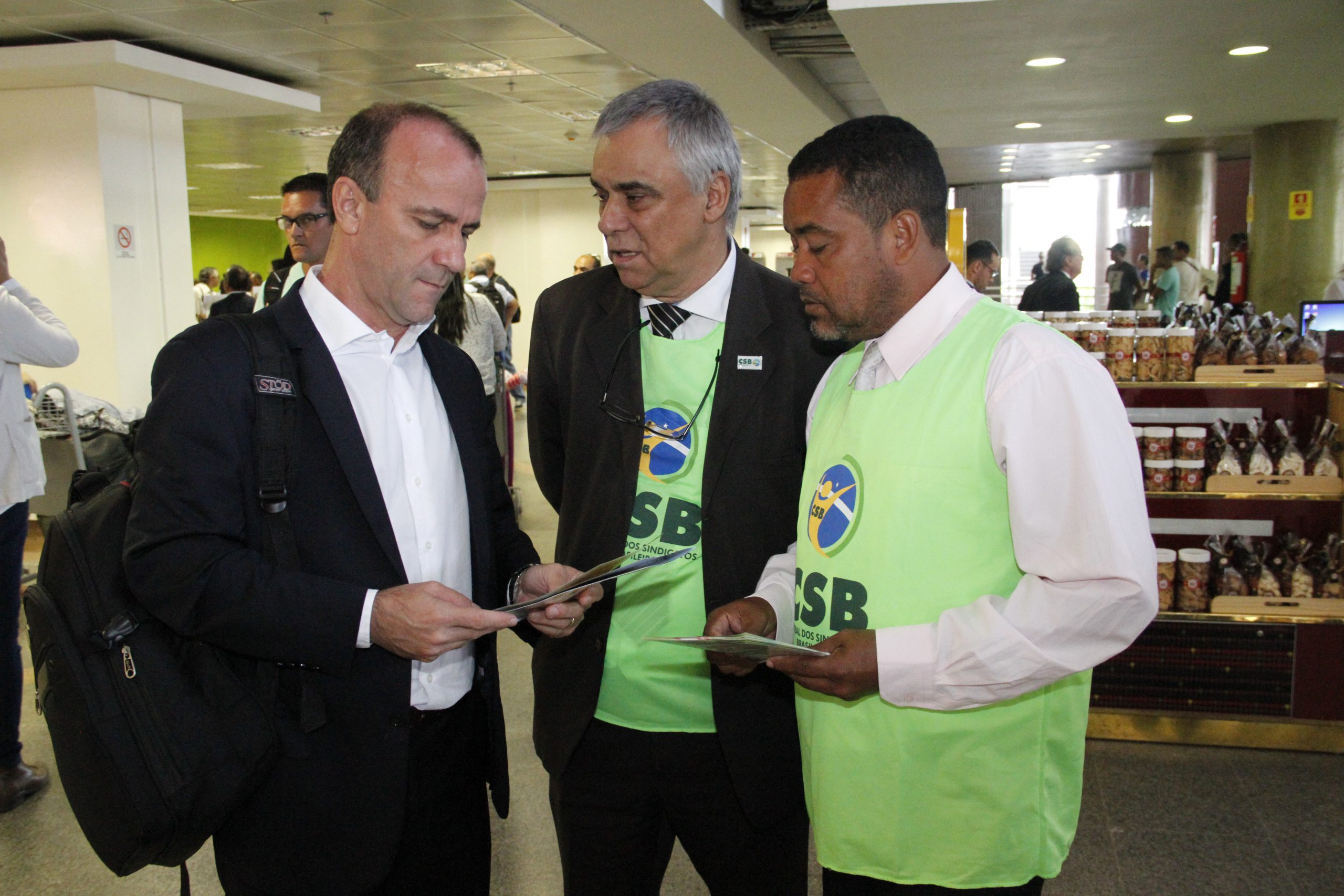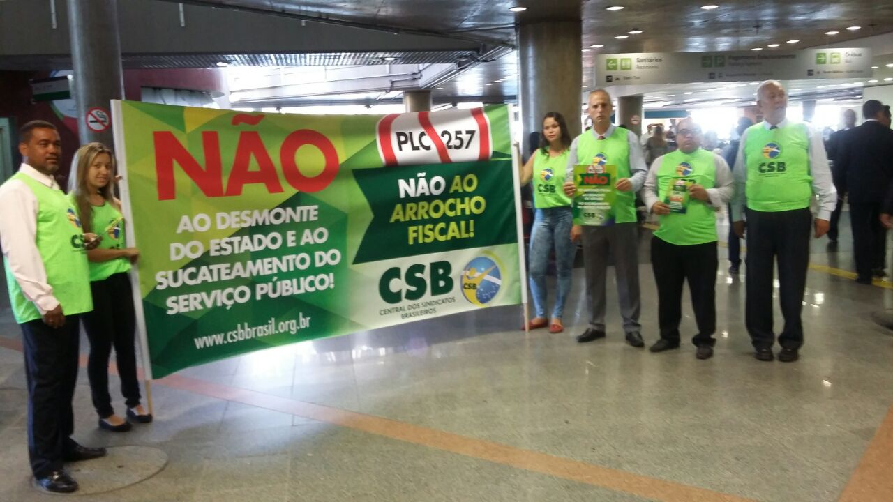 Dirigentes da CSB realizam ação contra PLP 257 no aeroporto de Brasília