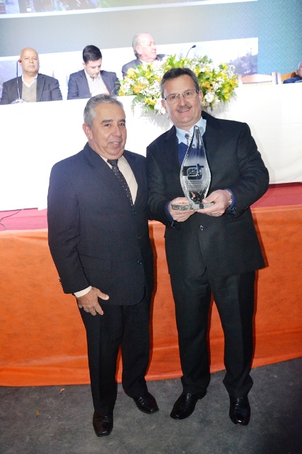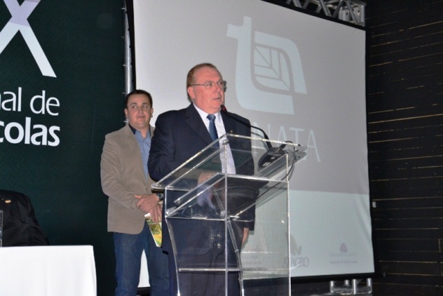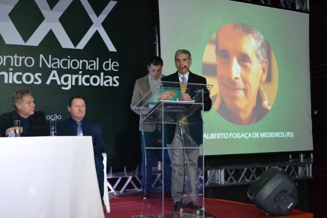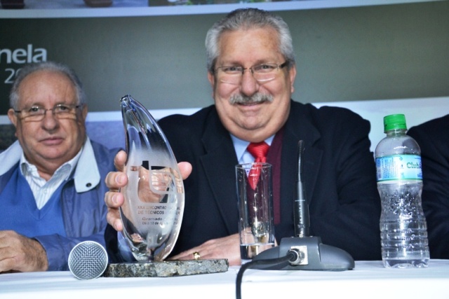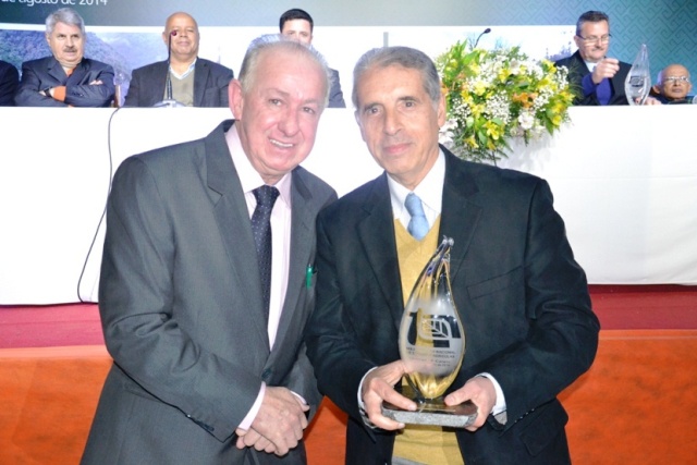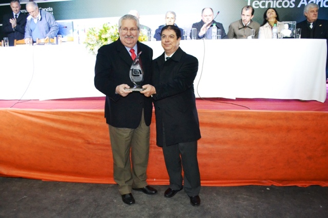 Mario Limberger entregando o Premio Tecnico Agricola a Jose Fogaca