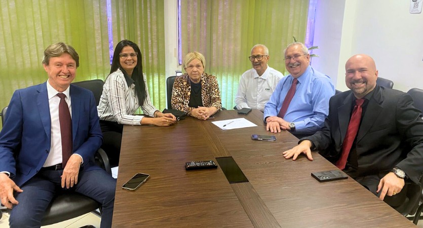 A Central dos Sindicatos Brasileiros (CSB) recebeu nesta quinta-feira (27), em sua sede em Brasília, uma comitiva de dirigentes da Federação Nacional dos Odontologistas (FNO). A visita ocorreu durante uma série de agendas do presidente nacional da CSB, Antonio Neto, na capital federal, que acompanhou a reunião juntamente com o assessor de Assuntos Parlamentares da Central, Ernesto Pereira.