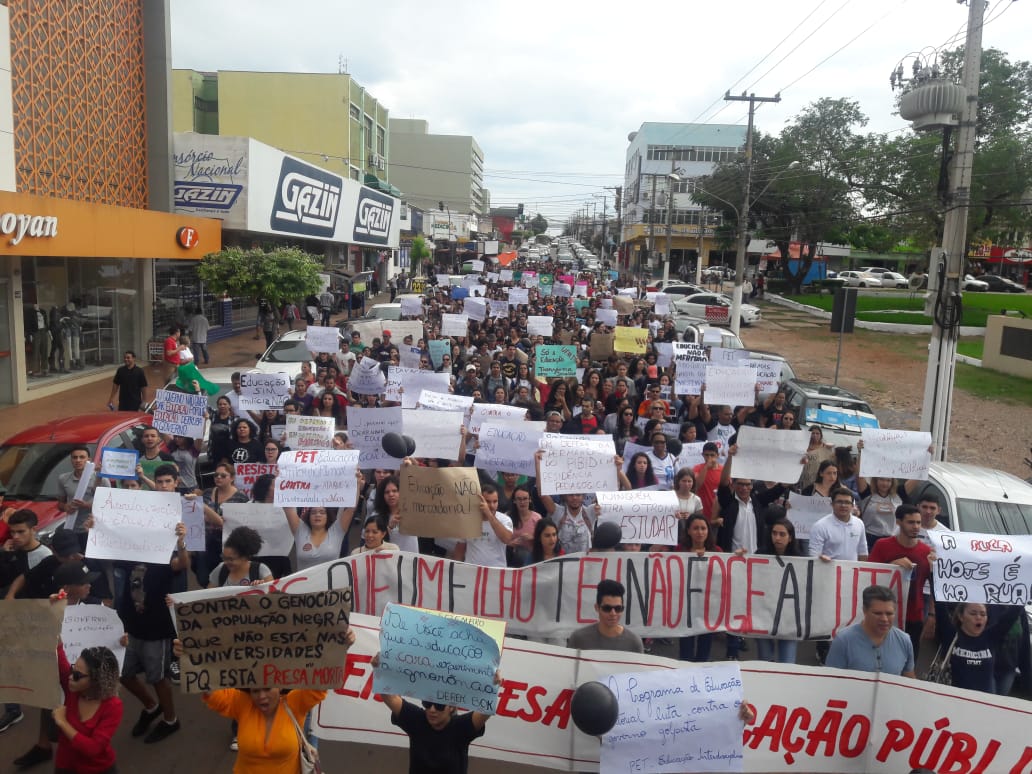 11h40 – Milhares de alunos, servidores e professores de escolas e universidades do Pará marcham pelas ruas de Belém. A mobilização começou na praça da República, no centro da capital.