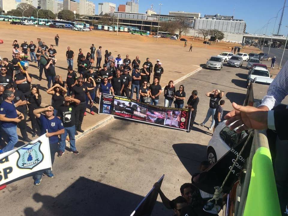 Representantes do Sindicato dos Agentes Penitenciários e Socioeducativos de Santa Catarina (SINDAPS/SC) se juntaram a agentes de outros 11 estados e participaram na manhã desta quarta-feira (4), em Brasília, da mobilização nacional dos agentes contra os vetos presidenciais à Lei 13.675/2018, que trata do Sistema Único de Segurança Pública (SUSP).