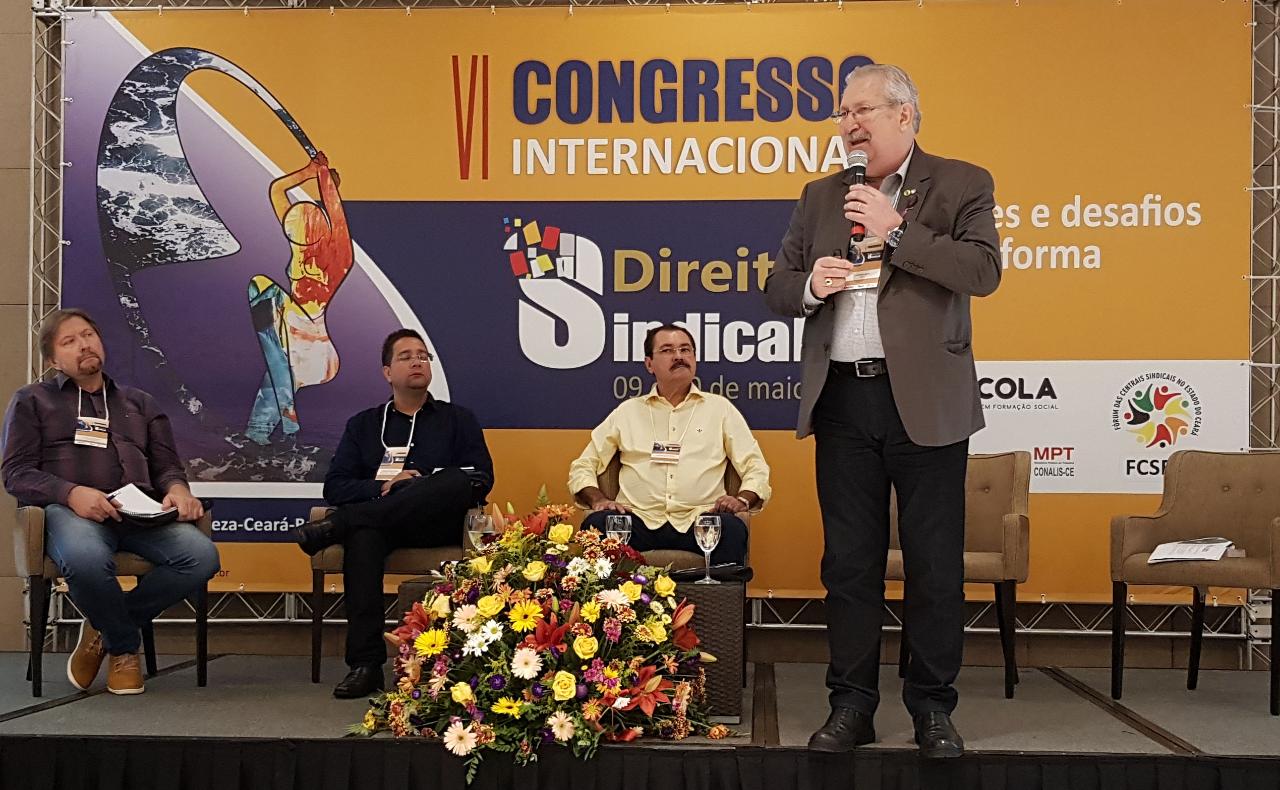 O presidente da Central dos Sindicatos Brasileiros (CSB), Antonio Neto, participou na manhã desta sexta-feira (10), na capital cearense, da sexta edição do Congresso Internacional de Direito Sindical. Em sua palestra intitulada “Os Desafios do Sindicalismo”, Neto falou aos participantes sobre a importância do fortalecimento das entidades sindicais em mundo que sofre com o avanço de um movimento ultraliberal ao redor do planeta, que gera miséria e trava o desenvolvimento.