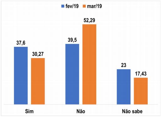 Outra má notícia para o governo aparece na posição dos deputados sobre a reforma da Previdência. O percentual que se diz favorável à proposta encaminhada há um mês recuou de 68,80% para 55,96%. Já os contrários saltaram de 23,85% para 33,94%.