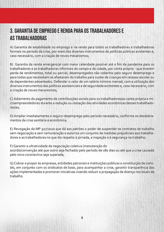 Centrais Sindicais divulgam Plataforma Emergencial para o enfrentamento da pandemia do coronavírus e da crise brasileira