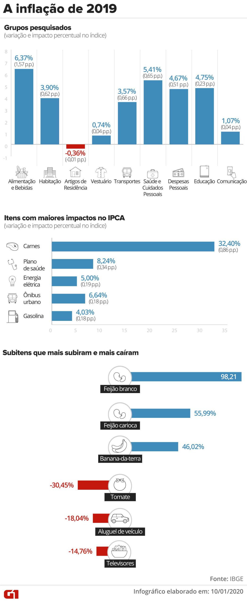 O aumento acima do esperado do INPC se deu pela alta de dezembro, que foi de 1,22%. Isso elevou o valor do índice de inflação em 2019 para 4,48%, ou seja, acima das projeções do mercado financeiro.