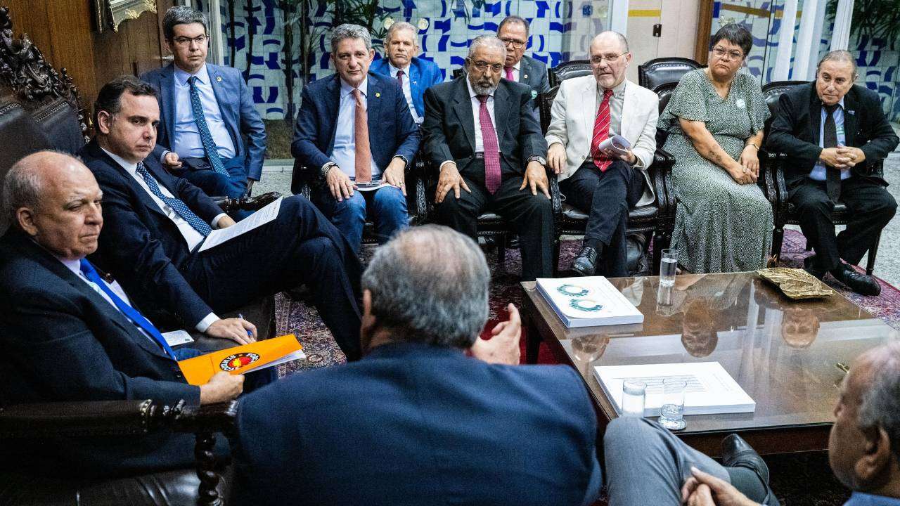 Pacheco defendeu a mesma ideia após a reunião e disse que o Congresso buscará uma solução para o autofinanciamento dos sindicatos, baseado no diálogo que está sendo realizado entre as partes.