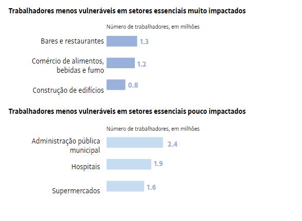 A análise do grupo indica que mesmo trabalhadores com vínculo formal, e que atuam em atividades consideradas essenciais que podem continuar sendo exercidas apesar das medidas de isolamento impostas pelas autoridades para conter a transmissão do vírus, tornaram-se vulneráveis diante da crise.
