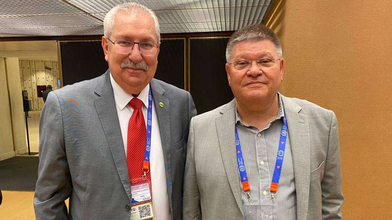 A CSB participou ainda de uma reunião com amigos e filiados na Federação Sindical Mundial (FSM), da qual Antonio Neto foi o primeiro presidente brasileiro. Na foto, ele está com um dos atuais dirigentes da entidade, Petros Petrou, do Chipre.