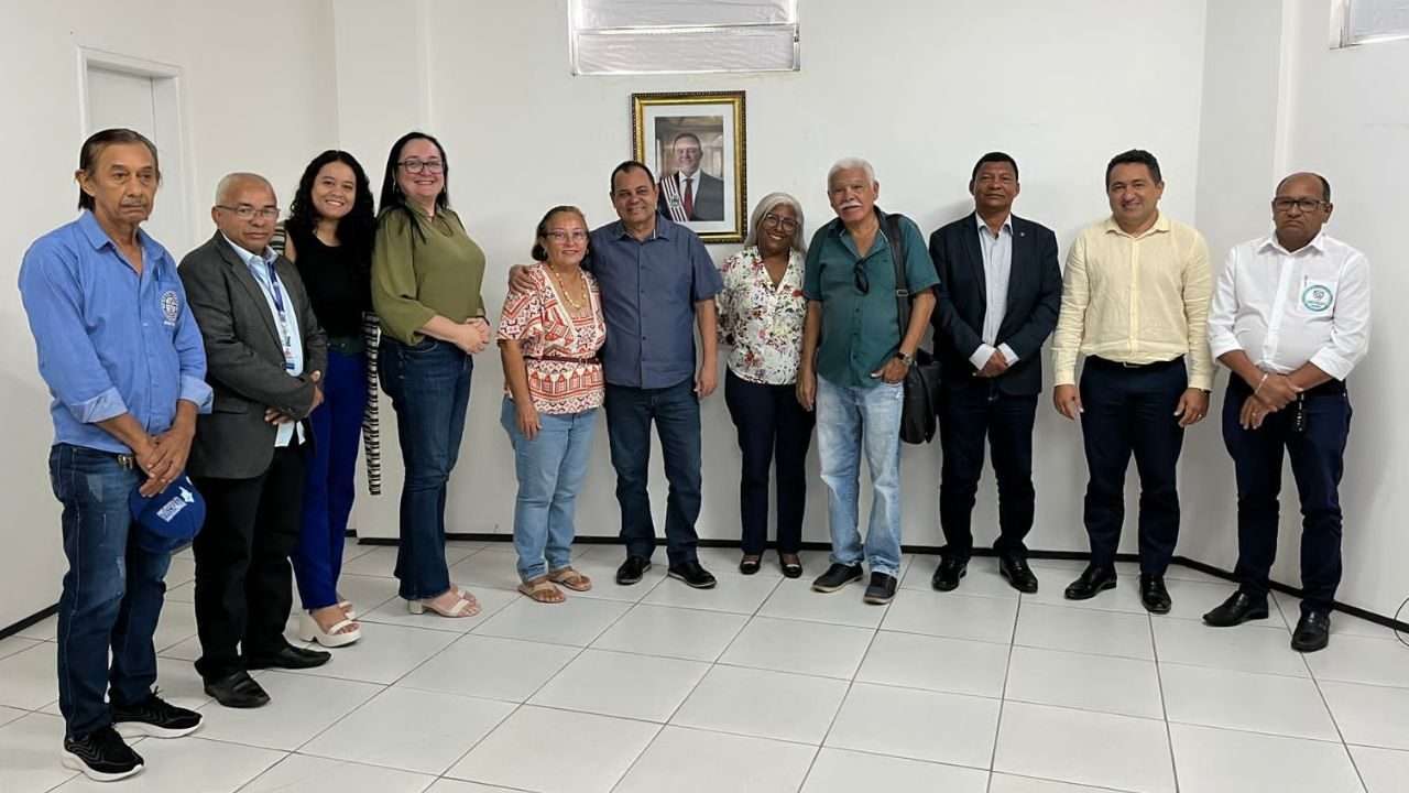 Além de lideranças sindicais, participam da reunião o subsecretário do Trabalho, Genilson Alves, e a supervisora de Intermediação de Geração de Emprego e Renda, Carla Alcântara.