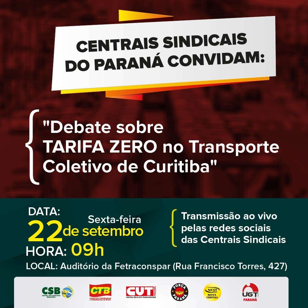 Na sexta-feira (22), as centrais sindicais realizarão um debate no auditório da Fetraconspar (Rua Francisco Torres, 427) sobre como a tarifa zero no transporte público teria um impacto positivo não apenas na vida dos trabalhadores, mas traria benefícios para toda a cidade.