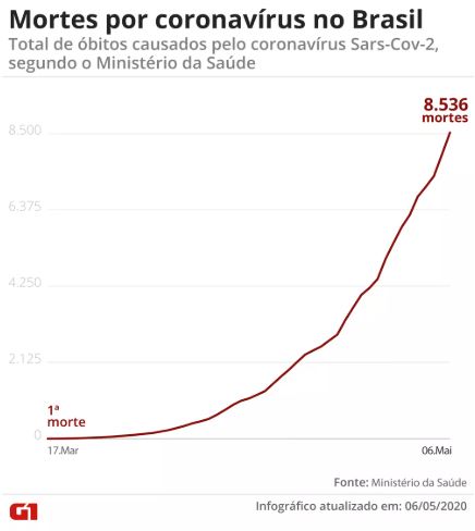 Brasil tem 8.536 mortes e 125.218 casos confirmados de novo coronavírus, diz ministério.É o maior aumento diário no total de mortes e de casos novos desde o começo da pandemia.