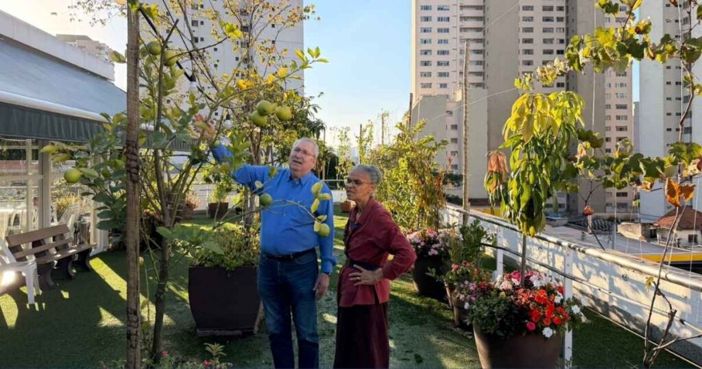 Outro momento marcante da visita foi a ida ao terraço do sindicato, onde os trabalhadores da própria entidade criaram um espaço verde com dezenas de árvores frutíferas. O local, que se destaca como um jardim suspenso em meio ao centro da capital paulista, chamou a atenção de Marina Silva, que o definiu como um “pulmão” na cidade, destacando a importância de iniciativas sustentáveis em ambientes urbanos.