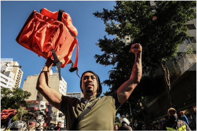 No dia 1º de julho, uma paralisação reuniu cerca de mil profissionais em São Paulo, segundo o sindicato da categoria, e durou mais de sete horas. O protesto foi nacional e pedia taxas mais justas aos apps e ajuda como itens básicos de proteção durante a pandemia do coronavírus.