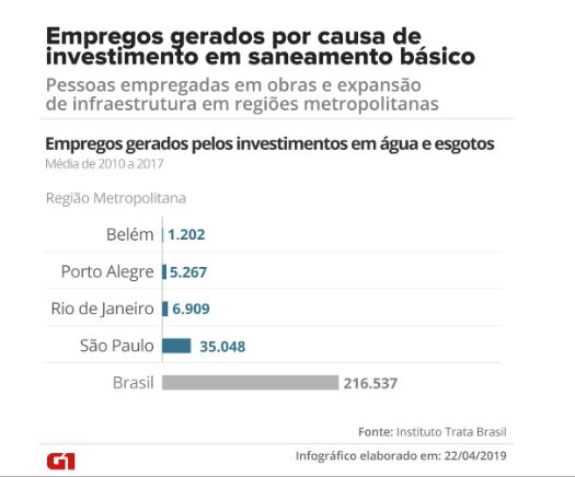 O estudo defende que o investimento em saneamento básico cria empregos não apenas pela necessidade de mão de obra para as construções. O operação posterior do sistema também asseguraria mais postos de trabalho.