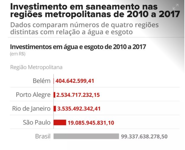 Para traçar o comparativo, o Trata Brasil analisou índices de quatro regiões metropolitanas: Belém, Porto Alegre, Rio de Janeiro e São Paulo. De acordo com o presidente do instituto, elas foram escolhidas aleatoriamente, mas permitem traçar um panorama do país como um todo.