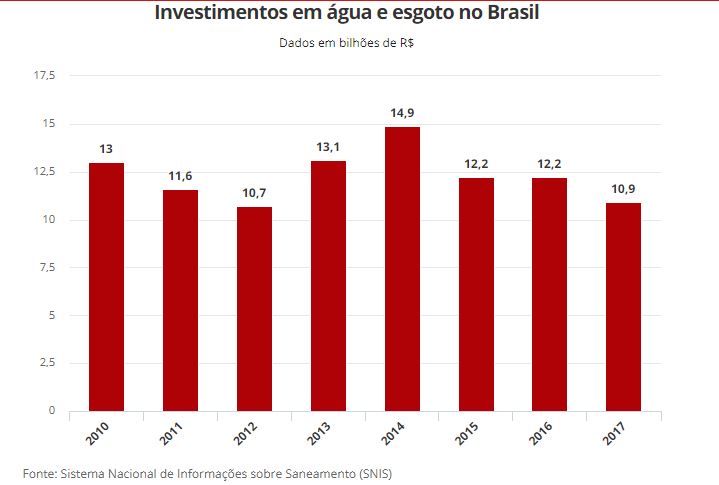 De acordo com o levantamento do Trata Brasil, para cumprir este último objetivo é necessário investir ainda R$ 357 bilhões – uma média anual de R$ 24 bilhões. Ocorre que, entre 2010 e 2017, os valores variaram de R$ 10,7 bilhões a R$ 14,9 bilhões.