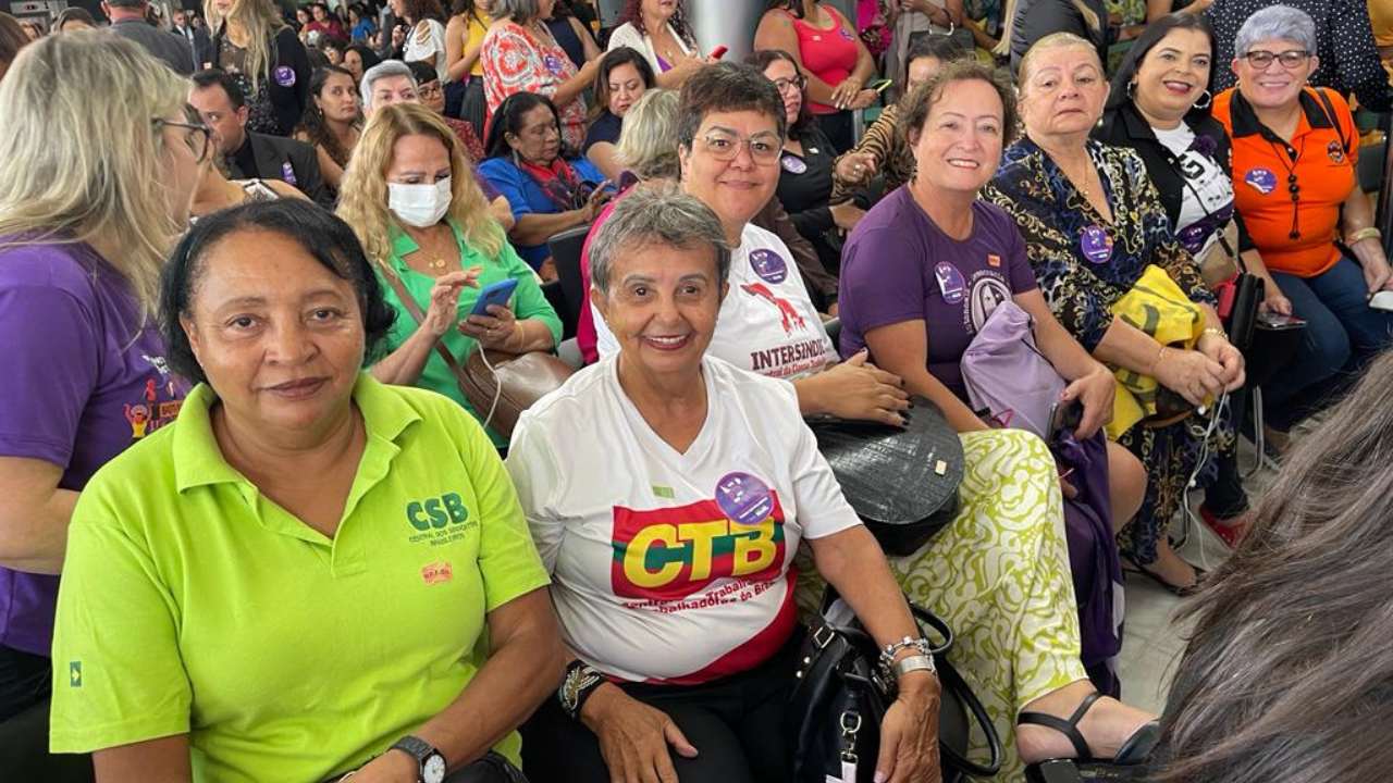 A plateia foi totalmente composta por mulheres, representantes de sindicatos e movimentos sociais. Dentre elas, a Secretaria da Mulher Trabalhadora da CSB, Antonieta de Faria.