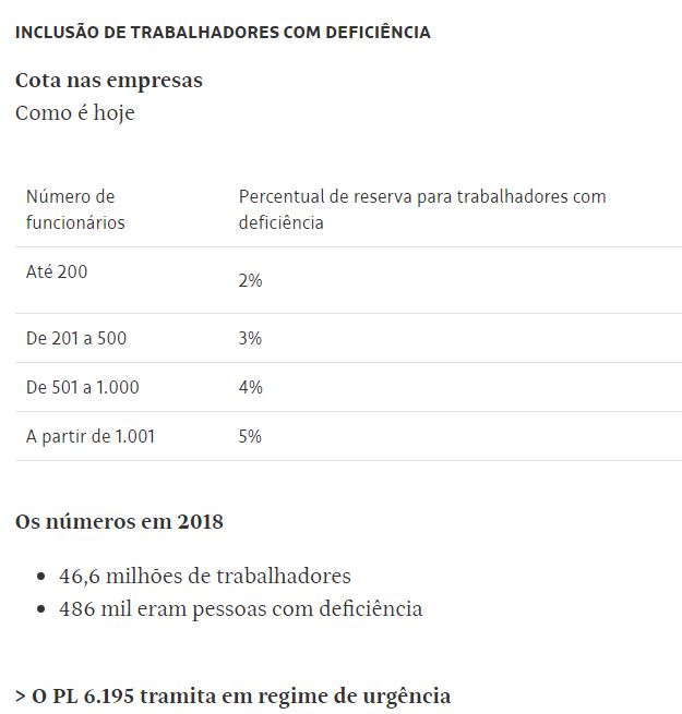 O Ministério de Economia diz, em nota, que a tramitação do projeto é o momento propício para a discussão. Afirma também que a medida pretende avançar na política de inclusão por duas formas alternativas de cumprimento.