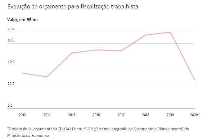 De um total de R$ 1,4 trilhão de despesas previstas para 2020, foram reservados R$ 26 milhões para operações de inspeção de segurança e saúde no trabalho, combate ao trabalho escravo e verificações de obrigações trabalhistas.