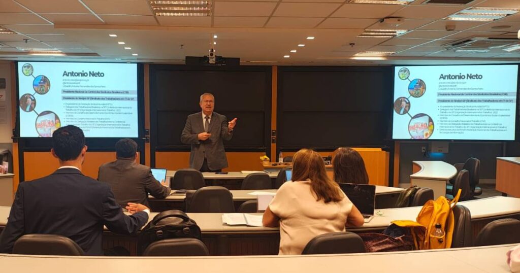 Na última segunda-feira (06), o presidente da Central dos Sindicatos Brasileiros (CSB) e do Sindpd-SP, Antonio Neto, ministrou uma aula sobre “Sindicalismo na Era da IA” para alunos do curso de pós-graduação de Direito do Trabalho do Insper Instituto de Ensino e Pesquisa.