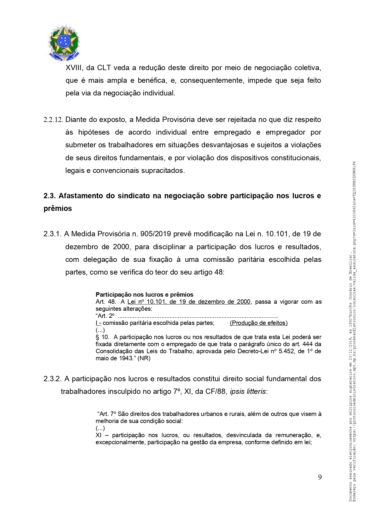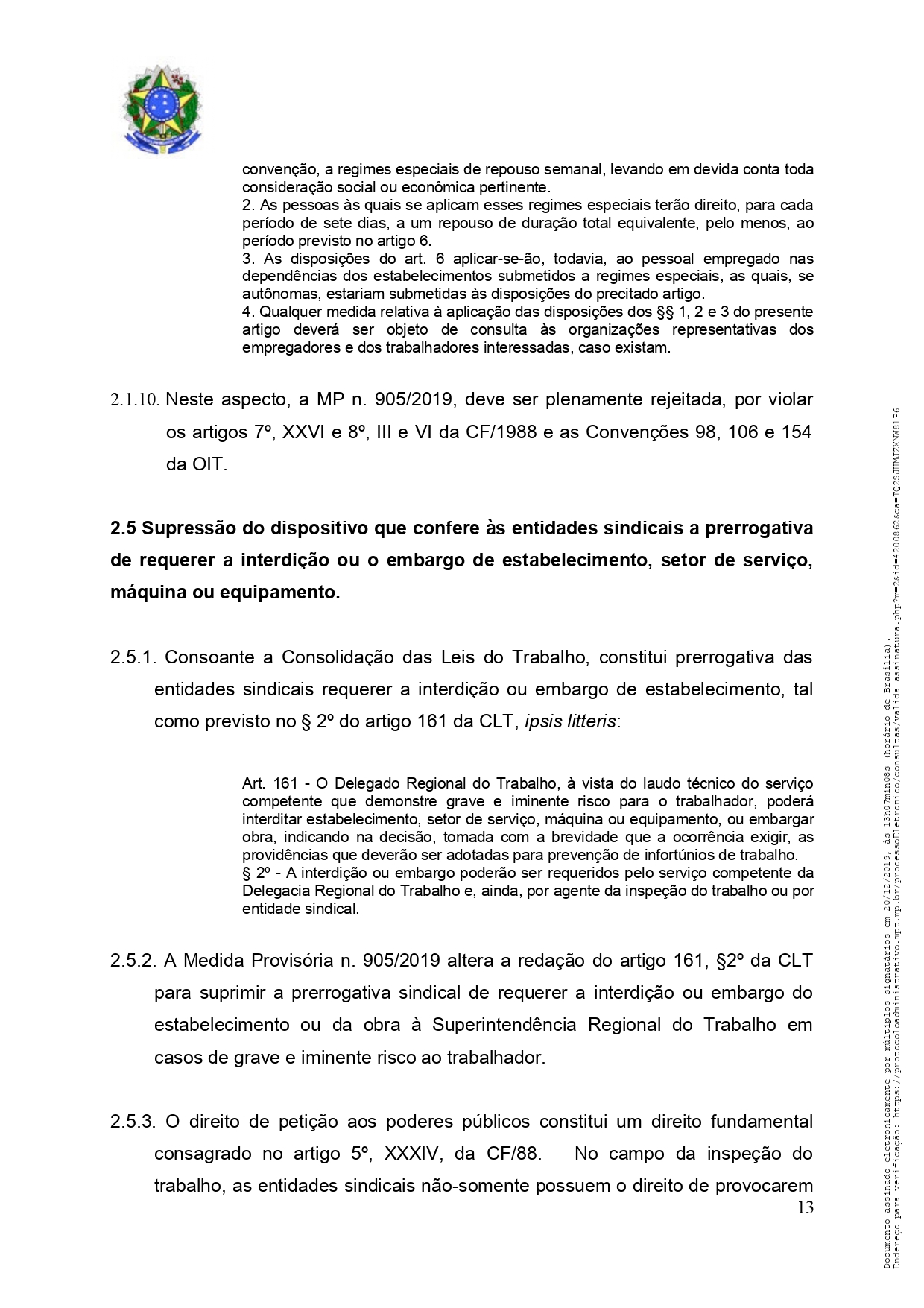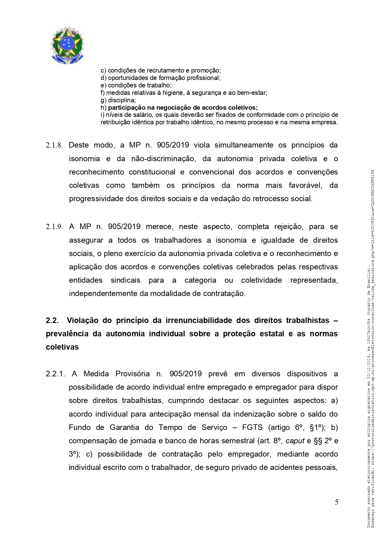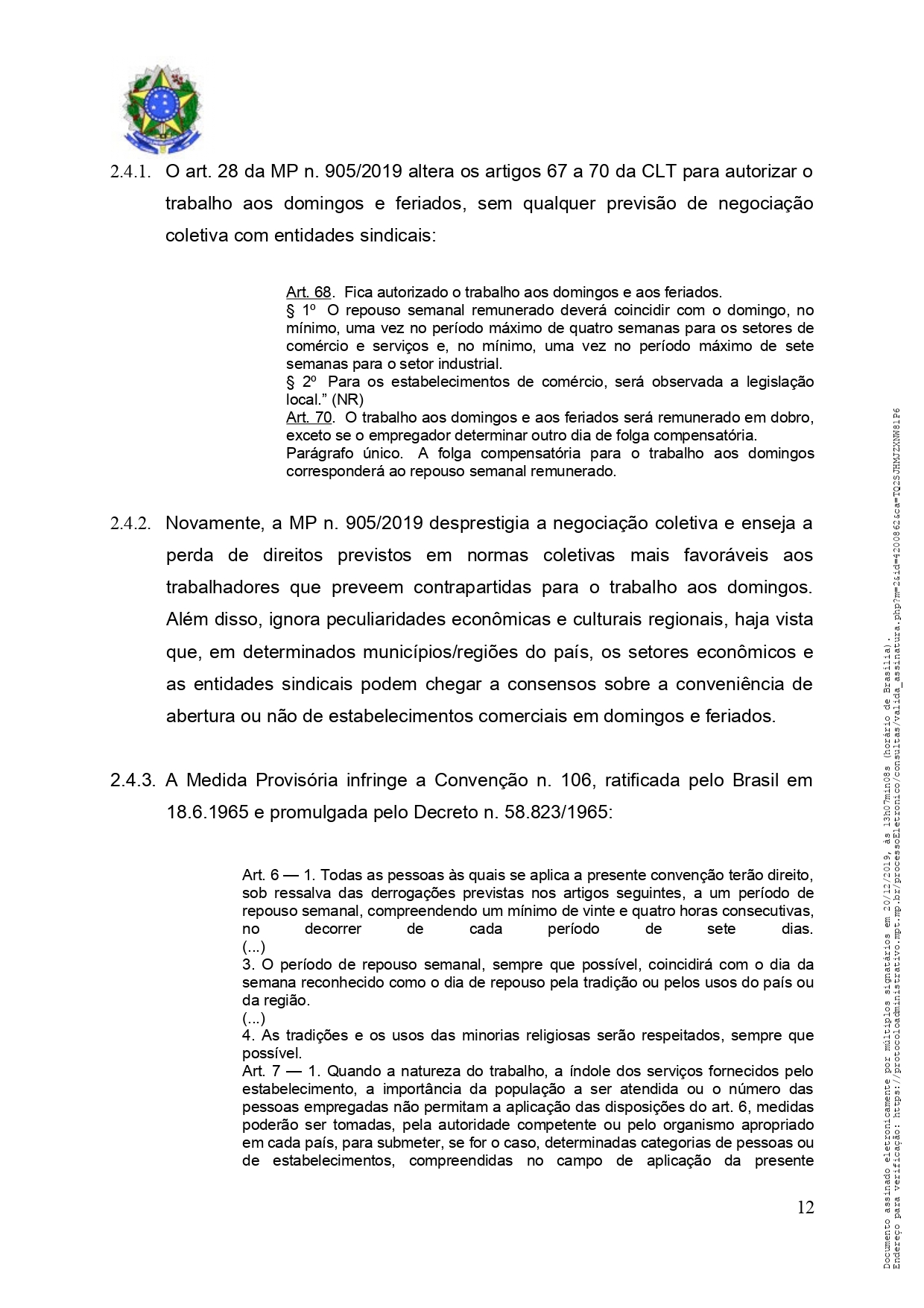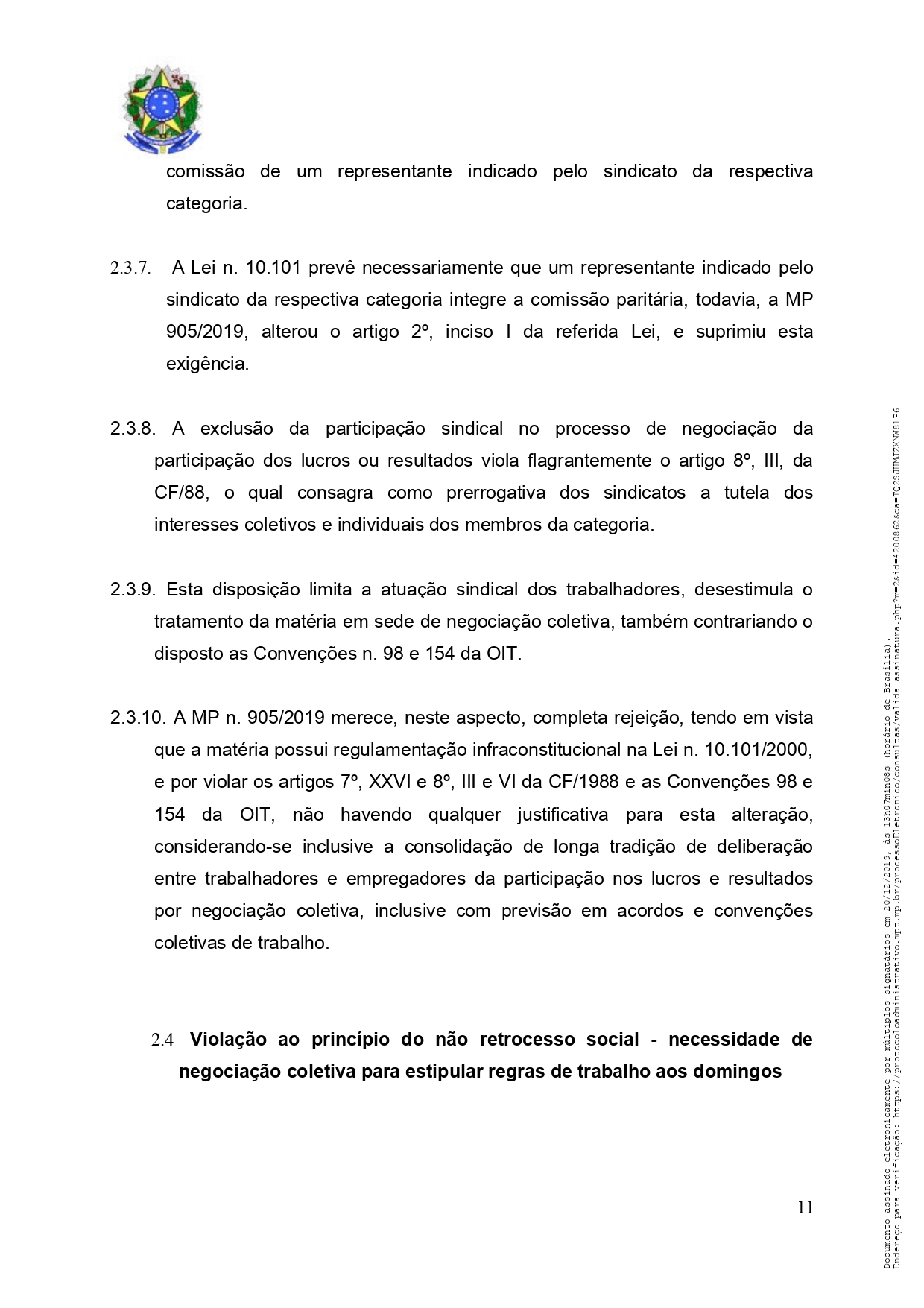 O texto chama atenção ao enfraquecimento dos acordos e convenções coletivas de trabalho, previstos na Constituição Federal, e também por obstruir o direito a negociação coletiva, promulgado pela Organização Internacional do Trabalho (OIT).