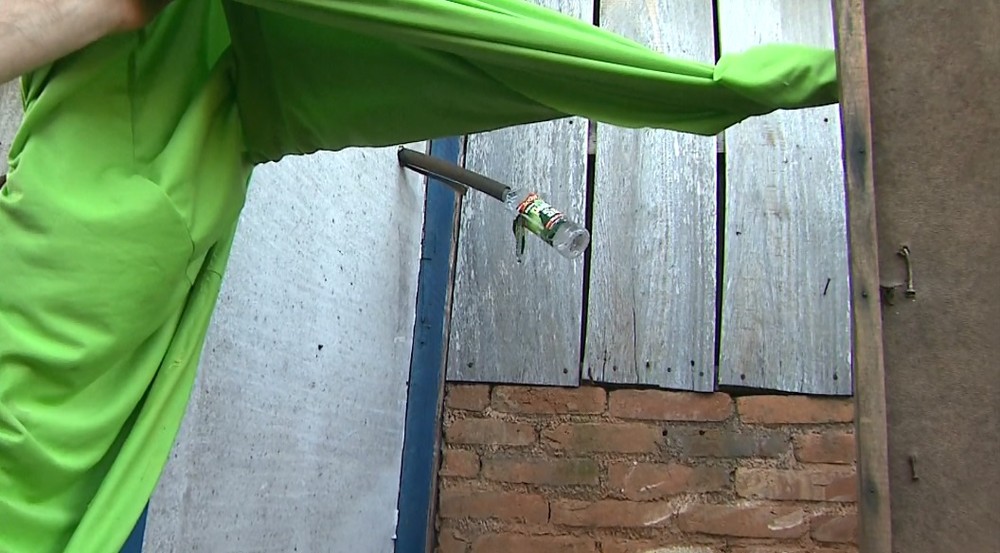 Trabalhadores rurais usavam mangueira para tomar banho em Pedregulho — Foto: Márcio Meireles/EPTV/Arquivo