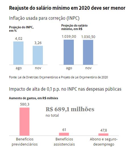 Isso explica a frustração no valor do salário mínimo para 2020, que pode ficar até R$ 9 abaixo do que foi divulgado anteriormente.