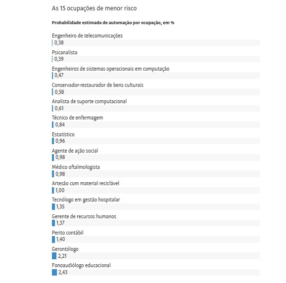 Feito pelo Laboratório de Aprendizado de Máquina em Finanças e Organização da UnB (Universidade de Brasília), o trabalho avaliou as 2602 ocupações brasileiras.