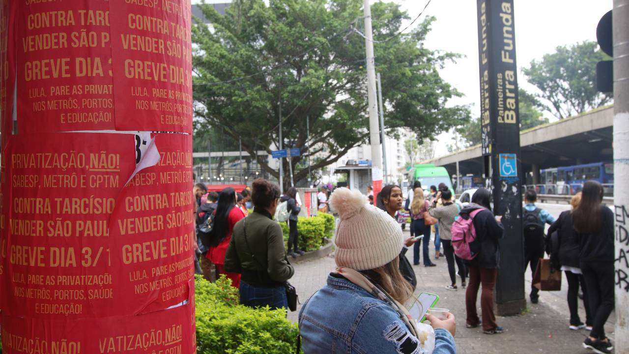 A greve dos trabalhadores afeta 9 linhas da CPTM e do Metrô de São Paulo. Funcionários da Sabesp também aderiram à paralisação contra a privatização de equipamentos do estado de SP, visto que o governo Tarcísio também defende a venda da estatal paulista de água e esgoto.